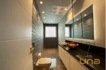 Com três suítes amplas, duas delas com varanda privativa e uma suíte master com banheira, No pavimento superior, uma sala íntima com porcelanato de primeira linha.