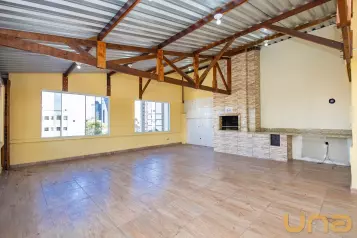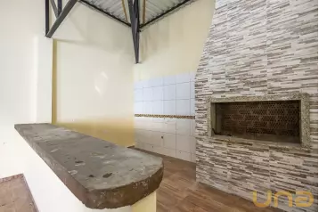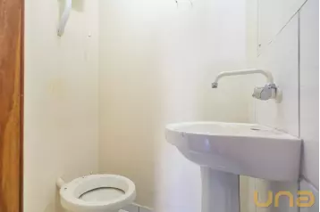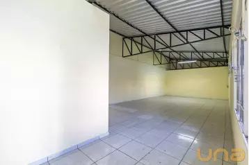 Sala ampla com uma menor dividida por drywall, e banheiro social;